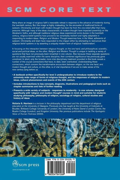 The SCM Core Text on Religion and Modern Thought examines in detail the relationship between religion and modern and post-modern thought and culture. The book provides an introduction to the extremely wide variety of forms of religious thought and examines how, in the West, adherents of Judaism, Christianity and Islam have responded to the impact of modernity upon religion, either by attempting to restructure their religious belief systems or by asserting a uniquely modern form of religious 'traditionalism'. The book focuses on the encounter between the Abrahamic faiths and modern thought, and also on intellectual and cultural developments of ideas that have had ' or look set to have ' the biggest impact. The book begins by tackling the difficulties in defining terms such as religion, and what qualifies a person as being religious. It also sets out a brief background to the history and development, the key characteristics and core beliefs of each of the three Abrahamic faiths. Following these scene-setting chapters, each section of the book goes on to look at a different theme germane to the encounter between the traditional Abrahamic religions and modern thought. The themes discussed are; the relationship between religious faith and modern philosophy; the challenges of religious language; natural science including the effects of psychology on religion; religious pluralism, religious inclusivism and religious exclusivism; the relationship between politics, religion and the environment; post-holocaust Jewish theologies; theologies of liberation, black theology, eco-theology, feminist theology and eco-feminist theology; fundamentalism in all three of the faiths; secularisation; the effects of post-modernism and how Christianity, Judaism and Islam look in a post-modern world, analysing the characteristics of post-modernity and considering the re-interpretations of religion in a post-modern world.