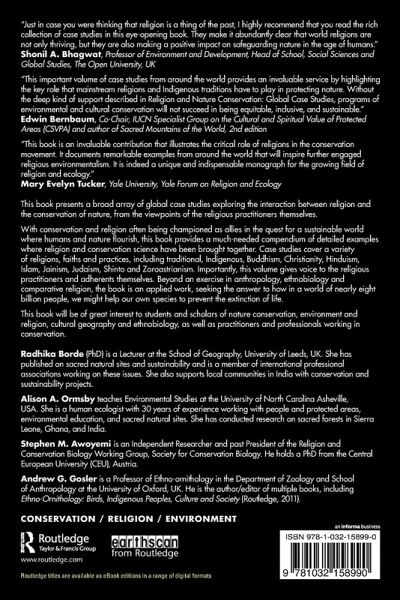 With conservation and religion often being championed as allies in the quest for a sustainable world where humans and nature flourish, this book provides a much-needed compendium of detailed examples where religion and conservation science have been brought together. Case studies cover a variety of religions, faiths and practices, including traditional, Indigenous, Buddhism, Christianity, Hinduism, Islam, Jainism, Judaism, Shinto and Zoroastrianism. Importantly, this volume gives voice to the religious practitioners and adherents themselves. Beyond an exercise in anthropology, ethnobiology and comparative religion, the book is an applied work, seeking the answer to how in a world of nearly eight billion people, we might help our own species to prevent the extinction of life.