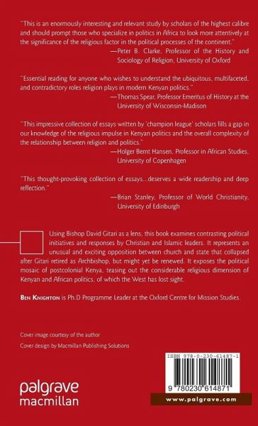 "This is an enormously interesting and relevant study by scholars of the highest calibre of the religious dimension to modern Kenyan politics and should prompt those who specalize in politics in Africa as a whole to look more attentively and with greater seriousness than is usually the case at the significance of the religious factor in the political processes of the continent." - Peter B Clarke, Professor of the History and Sociology of Religion, University of Oxford