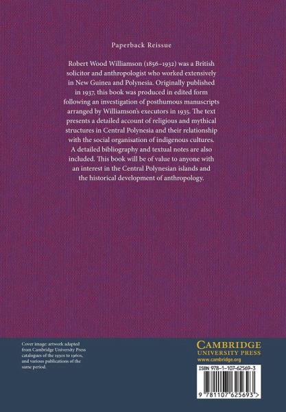 Robert Wood Williamson (1856-1932) was a British solicitor and anthropologist who worked extensively in New Guinea and Polynesia. Originally published in 1937, this book was produced in edited form following an investigation of posthumous manuscripts arranged by Williamson's executors in 1935. The text presents a detailed account of religious and mythical structures in Central Polynesia and their relationship with the social organization of indigenous cultures. A detailed bibliography and textual notes are also included. This book will be of value to anyone with an interest in the Central Polynesian islands and the historical development of anthropology.