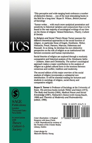 The second edition of this major book on the social analysis of religion incorporates a substantial new introduction by Bryan S Turner. Religion and Social Theory assesses the different theoretical approaches to the social function of religion. Turner discusses at length the ideas of key contributors to these approaches (including Engels, Durkheim, Weber, Nietzsche, Freud, Parsons, Marcuse, Habermas and Foucault). In so doing, he develops a distinctive perspective on the role of religion as an institutional link between economic and human reproduction. Social theories of religion are explored through a resolutely comparative and historical analysis of the Abrahamic faiths - Judaism, Islam and Christianity. Relating comparative religion to the social context of individualism, civil religions and political legitimacy, the book makes a major contribution to the analysis of conflict and consensus in social systems.