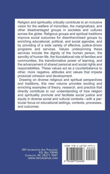 A volume in International Advances in Education: Global Initiatives for Equity and Social Justice Series Editors: Elinor L. Brown, University of Kentucky, Rhonda Craven, University of Western Sydney, and George McLean, Catholic Universities of America. Religion and spirituality make critical contributions to an inclusive vision for the welfare of minorities, the marginalized and other disadvantaged groups in societies and cultures around the globe. Religious movements and spiritual traditions work to improve social outcomes for disenfranchised groups by enriching educational, political, and social agendas, and by providing a wide variety of justice-driven programs and services. Values underpinning these services include the dignity of the human person, the sanctity of human life, the foundational role of families and communities, the transformative power of learning, and the advancement of shared personal and social rights and responsibilities. These values act as a counter-balance to other attitudes and values that may impede pro-social cohesion and development. Drawing on diverse religious and spiritual perspectives and traditions, this new volume provides exciting and enriching examples of theory, research and practice that directly contribute to our understanding of how religion and spirituality promote and facilitate social justice and equity in diverse social and cultural contexts - with a particular focus on educational settings, contexts, processes and outcomes. Religious communities invest heavily in schools, colleges and universities in the belief that these educational institutions enable them to inculcate into their membership the kinds of moral values and qualities that lie at the heart of their spiritual teachings. Looking beyond the sacred-secular impasse, religious organisations attempt to provide a "education for life" which draws from both the scientia of science and the sapientia of religion and spirituality. These depth-dimensions provide the pool of values which enable citizens to enact equity, mercy and justice in society in the name of God and for the sake of humanity. The chapters which comprise this volume demonstrate the possibility of a healthy integration between religion and education from a truly global, transdisciplinary and ecumenical perspective. From contexts within Asia, Africa, the USA and Australia, and from disciplines ranging from ethics to social work, from health to educational curriculum, from personal identity to community-consciousness; this volume makes a unique contribution to the theory and practice of the educational and religious inter-face. It is a contribution which holds a great deal of promise for being pro-humanitas.