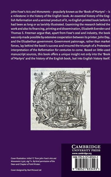 John Foxe's Acts and Monuments - popularly known as the 'Book of Martyrs' - is a milestone in the history of the English book. An essential history of the English Reformation and a seminal product of it, no English printed book before it had been as long or as lavishly illustrated. Examining the research behind the work and also its financing, printing and dissemination, Elizabeth Evenden and Thomas S. Freeman argue that, apart from Foxe's zeal and industry, the book was only made possible by extensive cooperation between its printer, John Day, and the Elizabethan government. Government patronage, rather than market forces, lay behind the book's success and ensured the triumph of a Protestant interpretation of the Reformation for centuries to come. Based on little-used manuscript sources, this book offers a unique insight not only into the 'Book of Martyrs' and the history of the English book, but into English history itself.