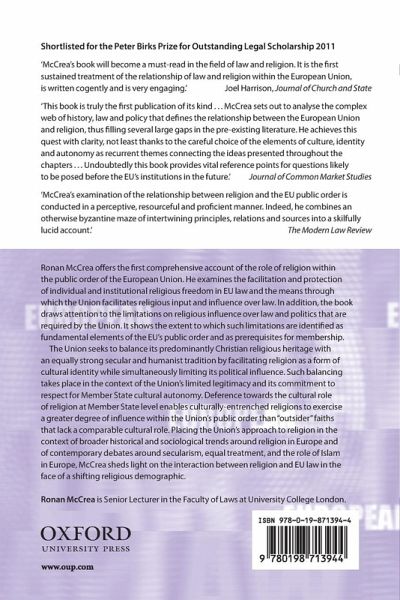 * 1: Introduction * 2: Europe's Religious Inheritance: Religion, Law and Identity in Contemporary Europe * 3: Balance, Inheritance and Religion as a Basis of Law in the Public Order of the European Union * 4: Religion as Identity and the Fundamental Rights Obligations of the Union * 5: The Regulation of Religion in the Single Market * 6: Competing Identities Limiting Religious Influence within the Public Order of the Union * 7: Conclusion