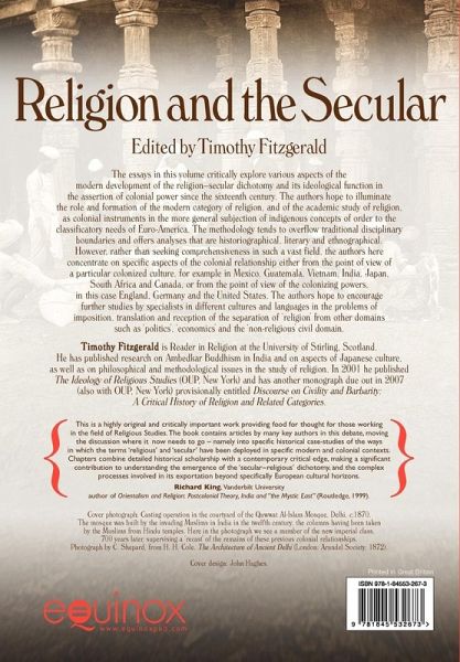 Introduction Timothy Fitzgerald 1. Dialectics of Conversion: Las Casas and Maya Colonial and Post-colonial Congregacion Anna Blume, (SUNY College of Visual Arts) 2. The Higher Ground: The Secular Knowledge of Objects of Religious Devotion Trevor Stack (University of Aberdeen) 3. The Alaskan Native Claims Settlement Act in the Context of the Colonisation of the Indigenous People of Alaska James Cox, (University of Edinburgh) 4. State Shinto, Westernisation, and the Concept of Religion in Japan Jun'ichi Isomae, (Japan Women's College) 5. Religious and Secular in the Vietnam War and the Emergence of Highland Ethno-nationalism Tom Pearson, (Wabash Center for Learning) 6. Colonialism all the way down? Religion and the secular in early modern writing on south India Will Sweetman, (University of Otaga) 7. Politics as Performance in Colonial and Postcolonial India John Zavos, (University of Manchester) 8. Imperial Inventions of Religion in Colonial Southern Africa David Chidester, (University of Cape Town) 9. Religion in Islamic Thought and Practice Abdulkader Ismail Tayob (University of Cape Town) 10. Rudolf Otto, German Cultural Colonialism, and the 'Discovery' of the Holy Gregory Alles, (McDaniel College) 11. Encompassing Religion and privatised religions and the invention of modern politics Timothy Fitzgerald 12. Colonialism and the Myth of Religious Violence William T. Cavanaugh, (University of St. Thomas, St. Paul, MN.)