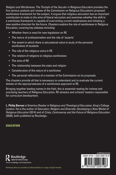 Religion and Worldviews: The Triumph of the Secular in Religious Education provides the first serious analysis and review of the Commission on Religious Education's proposed worldviews framework for the subject. It argues that religious education has an important contribution to make to the aims of liberal education and examines whether the shift to a worldview framework is capable of overcoming current weaknesses and initiating a new positive direction for the future. Chapters explore the role of worldviews in Religious Education, covering key debates including: