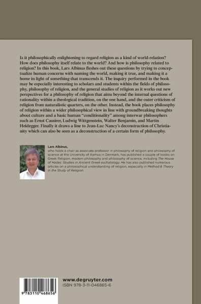 The book works out new perspectives for a philosophy of religion that aims beyond the internal questions of rationality within a theological tradition, on the one hand, and the outer criticism of religion from naturalistic quaters, on the other. Instead it places itself within a wider philosophical view in line with groundbreaking thoughts about culture and a basic human 'conditionality' among interwar philosophers such as Ernst Cassirer, Ludwig Wittgenstein, Walter Benjamin, and Martin Heidegger. The book also offers a concrete interpretation of examples of religious phenomena displaying a human world-relation that centers on issues of 'truth', 'name', and 'habitation'. Finally, lines are drawn to Jean-Luc Nancy's current rethinking of Christianity.