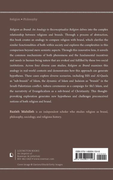 Religion as Brand: An Analogy to Reconceptualize Religion delves into the complex relationship between religions and brands. Through a process of abstraction, the book creates an analogy to compare religion with brand, which clarifies the similar functionalities of both within society and explores the complexities in this comparison beyond mere semiotic aspects. Through this innovative lens, it unveils the common mechanisms of both phenomena, and unveils fundamental incentives and needs in human-being nature that are evoked and fulfilled by these two social institutions. Across four diverse case studies, the book examines this analogy in real-world contexts and demonstrates how this approach can generate hypotheses. These cases explore diverse scenarios, including ISIS and Al-Qaeda as "sub-brands" of Islam, the dynamic of Islam and Judaism as "brands" in the Israeli-Palestinian conflict, Ashura ceremonies as a campaign for Shi'i Islam, and the narrativity of Evangelicalism as a sub-brand of Christianity. This thought-provoking exploration generates new hypotheses and challenges preconceived notions of both religion and brand.