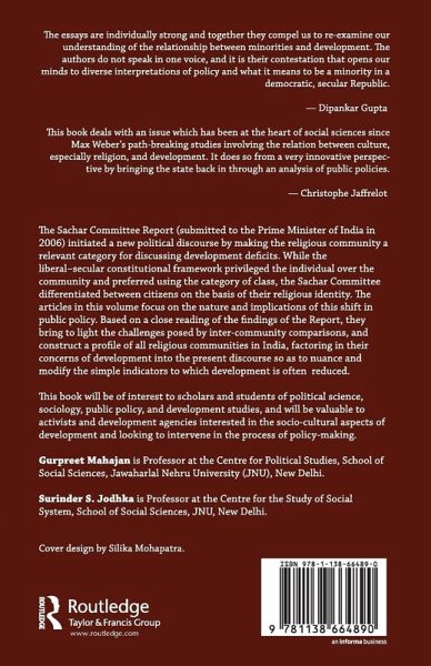 List of Abbreviations Preface and Acknowledgements 1. Religion, Community and Development Gurpreet Mahajan 2. Religion and Indian Politics: Changing Perspectives D.L.Sheth 3. Group Equality and the Public Sphere: The Sachar Committee Report and Multiculturalism in India Amir Ali 4. Hindutva's Discourse on Development Pralay Kanungo 5. Seva, sangathanas and gurus: Service and the Making of the Hindu nation Sujata Patel 6. Development as Liberation: An Indian Christian Perspective Rudolf C. Heredia 7. Indian Christians: Trajectories of Development Rowena Robinson 8. Religious Identities and Discourses of Development: The Sikhs in Contemporary Times Surinder S. Jodhka 9. A Long-Term View of Contemporary Muslim Situation in India Javeed Alam 10. Between Identity and Equity: An Agenda for Affirmative Action Tanweer Fazal 11. Struggle for the Margin or from the Margin Gopal Guru 12. Literacy, Education and Gender Gap among Socio-religious Groups Ravinder Kaur 13. Cultural Rights of Minorities during Constitution-making: A Re-reading Rochana Bajpai 14. The Goan Muslim: Presence through Invisibility V Sri Ranjani Glossary Index