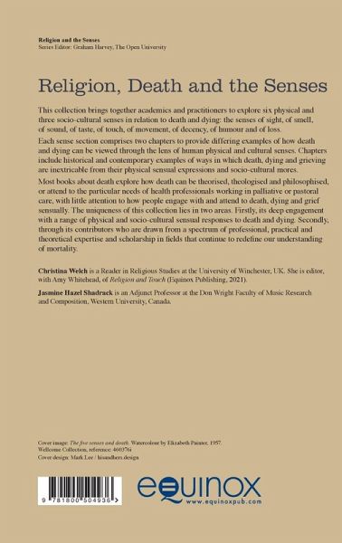 This edited collection brings together academics and practitioners to explore 6 physical and 3 socio-cultural senses in relation to death and dying: the senses of sight, of smell, of sound, of taste, of touch, of movement, of decency, of humour, and of loss. Each sense section comprises two chapters to provide differing examples of how death and dying can be viewed through the lens of human physical and cultural senses. Chapters include historical and contemporary examples of ways in which death, dying and grieving are inextricable from their physical sensual expressions and socio-cultural mores. Most books about death explore how death can be theorised, theologised, and philosophised, or attend to the particular needs of health professionals working in palliative or pastoral care, with little attention to how people engage with and attend to, death, dying and grief sensually. The uniqueness of this collection lies in two areas, firstly its deep engagement with a range of physical and socio-cultural sensual responses to death and dying, and secondly, through its contributors who are drawn from a wide spectrum of professional, practical, and theoretical expertise and scholarship in fields which continue to redefine our understanding of mortality.