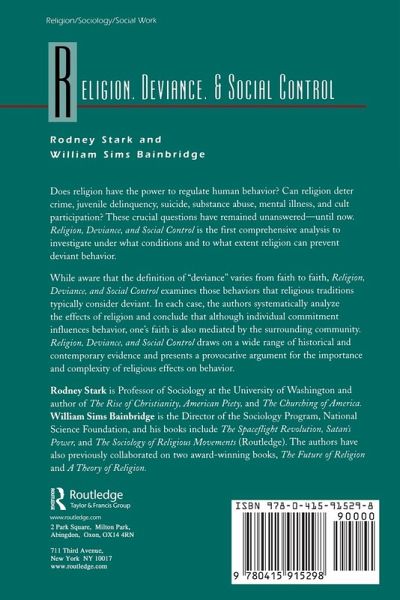 Does religion have the power to regulate human behavior? If so, under what conditions can it prevent crime, delinquency, suicide, alcoholism, drug abuse, or joining cults? Despite the fact that ordinary citizens assume religion deters deviant behavior, there has been little systematic scientific research on these crucial questions. This book is the first comprehensive analysis, drawing on a wide range of historical and contemporary data, and written in a style that will appeal to readers from many intellectual backgrounds.
