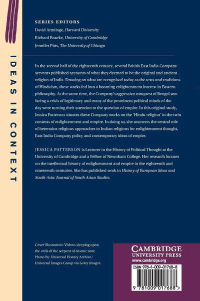 In the second half of the eighteenth century, several British East India Company servants published accounts of what they deemed to be the original and ancient religion of India. Jessica Patterson's original study situates these Company works on the 'Hindu religion' in the contexts of enlightenment and empire.