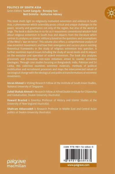 This book sheds light on religiously motivated extremism and violence in South Asia, a phenomenon which ostensibly poses critical and unique challenges to the peace, security and governance not only of the region, but also of the world at large. The book is distinctive in-so-far as it reexamines conventional wisdom held about religious extremism in South Asia and departs from the literature which centres its analyses on Islamic militancy based on the questions and assumptions of the West's 'war on terror'. This volume also offers a comprehensive analysis of new extremist movements and how their emergence and success places existing theoretical frameworks in the study of religious extremism into question. It further examines topical issues including the study of social media and its impact on the evolution and operation of violent extremism. The book also analyses grassroots and innovative non-state initiatives aimed to counter extremist ideologies. Through case studies focusing on Bangladesh, India, Pakistan and Sri Lanka, this collection examines extremist materials, methods of political mobilisation and recruitment processes and maps the interconnected nature of sociological change with the ideological transformations of extremist movements.