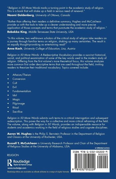 "Religion in 50 More Words marks a turning point in the academic study of religion. Aaron Hughes and Russell McCutcheon offer both scholars and the general public a comprehensive and provocative entrée into the challenging theories that are fundamentally altering the way 'religion' is conceived and treated both in universities and in settings that determine public policy. In clear, substantial and detailed discussions, the authors show that religion and the vocabulary related to the term do not refer to mysterious, universal and timeless principles, but rather point to compelling contingencies of history, power and politics. This is a book that will shake up a field in serious need of renewal."