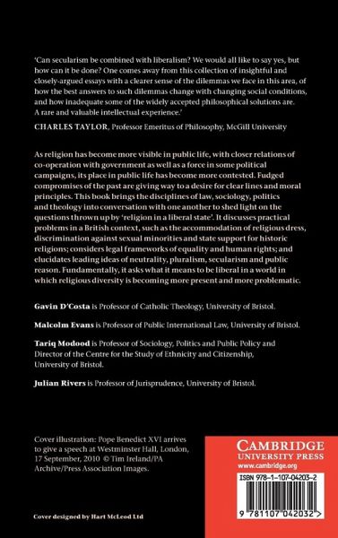 As religion has become more visible in public life, with closer relations of co-operation with government as well as a force in some political campaigns, its place in public life has become more contested. Fudged compromises of the past are giving way to a desire for clear lines and moral principles. This book brings the disciplines of law, sociology, politics and theology into conversation with one anther to shed light on the questions thrown up by 'religion in a liberal state'. It discusses practical problems in a British context, such as the accommodation of religious dress, discrimination against sexual minorities and state support for historic religions; considers legal frameworks of equality and human rights; and elucidates leading ideas of neutrality, pluralism, secularism and public reason. Fundamentally, it asks what it means to be liberal in a world in which religious diversity is becoming more present and more problematic.