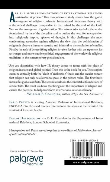 The essays in this volume, and the savvy introduction by Hatzopoulos and Petito, inform us of just how vital is religion in international relations today. Well before the events of 9/11, religion was once again-after a long hiatus-on the radar screen of scholars, although many remained unconvinced of its importance. No more. This volume makes a significant contribution to our understanding. -Jean Bethke Elshtain, The Laura Spelman Rockefeller Professor of Social and Political Ethics, The University of Chicago, author of the forthcoming book: Just War Against Terror. The Burden of American Power.