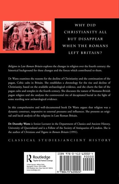 Religion in Late Roman Britain explores the changes in religion over the fourth century; the historical background for these changes and the forces which contributed to them. Dorothy Watts examines the reasons for the decline of Christianity and the continuation of the pagan, Celtic cults in Britain. The author establishes a chronology for the rise and decline of Christianity, based on the available archaeological evidence, and she charts the fate of the pagan cults and temples in the fourth century. The author discusses the nature of Romano-British pagan religion and she analyses the controversial rite of decapitated burial in the light of some startling new archaeological evidence.