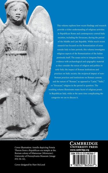 This book explores how recent findings and research provide a richer understanding of religious activities in Republican Rome and contemporary central Italic societies, including the Etruscans, during the period of the Middle and Late Republic. While much recent research has focused on the Romanization of areas outside Italy in later periods, this volume investigates religious aspects of the Romanization of the Italian peninsula itself. The essays strive to integrate literary evidence with archaeological and epigraphic material as they consider the nexus of religion and politics in early Italy; the impact of Roman institutions and practices on Italic society; the reciprocal impact of non-Roman practices and institutions on Roman custom; and the nature of 'Roman', as opposed to 'Latin', 'Italic', or 'Etruscan', religion in the period in question. The resulting volume illuminates many facets of religious praxis in Republican Italy, while at the same time complicating the categories we use to discuss it.