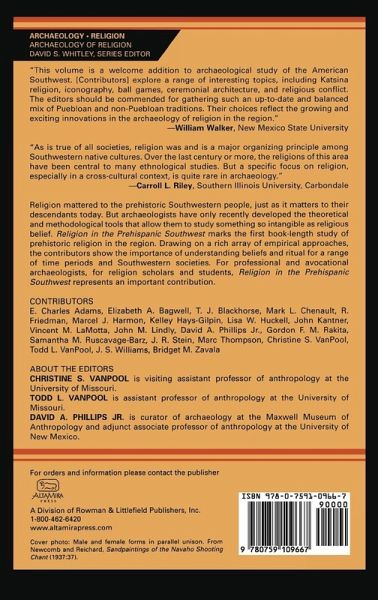 Religion mattered to the prehistoricSouthwestern people, just as it matters to their descendents today. Examining the role of religion can help to explain architecture, pottery, agriculture, even commerce. But archaeologists have only recently developed the theoretical and methodological tools with which to study this topic. Religion in the Prehispanic Southwest marks the first book-length study of prehistoric religion in the region. Drawing on a rich array of empirical approaches, the contributors show the importance of understanding beliefs and ritual for a range of time periods and southwestern societies. For professional and avocational archaeologists, for religion scholars and students, Religion in the Prehispanic Southwest represents an important contribution.
