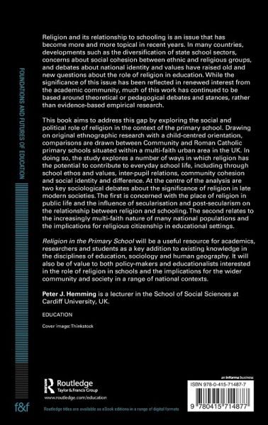 Religion and its relationship to schooling is an issue that has become more and more topical in recent years. In many countries, developments such as the diversification of state school sectors, concerns about social cohesion between ethnic and religious groups, and debates about national identity and values have raised old and new questions about the role of religion in education. Whilst the significance of this issue has been reflected in renewed interest from the academic community, much of this work has continued to be based around theoretical or pedagogical debates and stances, rather than evidence-based empirical research. This book aims to address this gap by exploring the social and political role of religion in the context of the primary school. Drawing on original ethnographic research with a child-centred orientation, comparisons are drawn between Community and Roman Catholic primary schools situated within a multi-faith urban area in the UK. In doing so, the study explores a number of ways in which religion has the potential to contribute to everyday school life, including through school ethos and values, inter-pupil relations, community cohesion and social identity and difference. At the centre of the analysis are two key sociological debates about the significance of religion in late modern societies. The first is concerned with the place of religion in public life and the influence of secularisation and post-secularism on the relationship between religion and schooling. The second relates to the increasingly multi-faith nature of many national populations and the implications for religious citizenship in educational settings. Religion in the Primary School will be a useful resource for academics, researchers and students as a key addition to existing knowledge in the disciplines of education, sociology and human geography. It will also be of value to both policy-makers and educationalists interested in the role of religion in schools and the implications for the wider community and society in a range of national contexts.