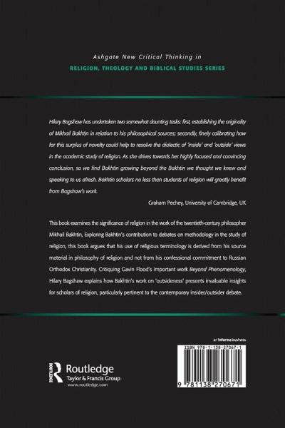 This book examines the significance of religion in the work of the twentieth century philosopher Mikhail Bakhtin. Exploring Bakhtin's contribution to debates on methodology in the study of religion, this book argues that his use of religious terminology is derived from his source material in philosophy of religion and not from his confessional commitment to Russian Orthodox Christianity. Critiquing Gavin Flood's important work Beyond Phenomenology, Hilary Bagshaw explains how Bakhtin's work on 'outsideness' presents invaluable insights for scholars of religion, particularly pertinent to the contemporary insider/outsider debate.