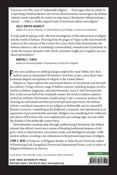How the fashion industry has contributed to religious change From cross necklaces to fashion designs inspired by nuns' habits, how have fashion sources interpreted Christianity? And how, in turn, have these interpretations shaped conceptions of religion in the United States? Religion in Vogue explores the intertwined history of Christianity and the fashion industry. Using a diverse range of fashion sources, including designs, jewelry, articles in fashion magazines, and advertisements, Lynn S. Neal demonstrates how in the second half of the twentieth century the modern fashion industry created an aestheticized Christianity, transforming it into a consumer product. The fashion industry socialized consumers to see religion as fashionable and as a beautiful lifestyle accessory-something to be displayed, consumed, and experienced as an expression of personal identity and taste. Religion was something to be embraced and shown off by those who were sophisticated and stylish, and not solely the domain of the politically conservative. Neal ultimately concludes that, through aestheticizing Christianity, the fashion industry has offered Americans a means of blending traditional elements of religion-such as ritual practice, miraculous events, and theological concepts-with modern culture, revealing a new dimension to the personal experience of religion.