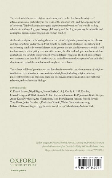 The relationship between religion, intolerance and conflict has been the subject of intense discussion, particularly in the wake of the events of 9-11 and the ongoing threat of terrorism. This book contains original papers written by some of the world's leading scholars in anthropology, psychology, philosophy, and theology exploring the scientific and conceptual dimensions of religion and human conflict. Authors investigate the following themes: the role of religion in promoting social cohesion and the conditions under which it will tend to do so; the role of religion in enabling and exacerbating conflict between different social groups and the conditions under which it will tend to do so; and the policy responses that we may be able to develop to ameliorate violent conflict and the limits to compromise between different religions. The book also contains two commentaries that distill, synthesize and critically evaluate key aspects of the individual chapters and central themes that run throughout the volume. The volume will be of great interest to all readers interested in the phenomenon of religious conflict and to academics across a variety of disciplines, including religious studies, philosophy, psychology, theology, cognitive science, anthropology, politics, international relations, and evolutionary biology.