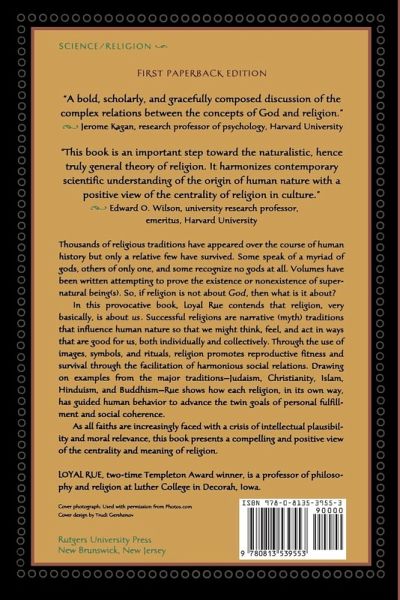In the course of human history, thousands of religious traditions have appeared, each with distinctive patterns of meaning. Some speak of a myriad of gods, others speak of only one, while some recognize no gods at all. Volumes have been written attempting to prove the existence or non-existence of supernatural being(s). But, if religion is not about God, then what on earth is it about? In this provocative book, Loyal Rue contends that religion, very basically, is about us. More specifically, it is a series of strategies that aims to influence human nature so that we might think, feel, and act in ways that are good for us, both individually and collectively. Employing images, symbols, and rituals, religion's main goals are to promote reproductive fitness and survival through the facilitation of harmonious social relations. Rue builds his argument by first assembling a theory of human nature, drawn from recent developments in cognitive science and evolutionary theory. He shows how cognitive and emotional systems work together and how they are conditioned by cultural influences, including religion. He then surveys the major religious traditions--Judaism, Christianity, Islam, Hinduism, and Buddhism--to show how each, in its own way, has guided human behavior to advance the twin goals of personal fulfillment and social coherence. Rue also considers the prospects for religious traditions in the light of contemporary challenges. As all religions are increasingly faced with a dual crisis of intellectual plausibility and moral relevance, they are being rendered less capable of shaping behavior in ways that are usefully adaptive. Rue warns that when religions outlive their adaptive utility, theybecome positive threats to human survival. Despite its bold and ambitious goals, this book is hostile to neither the idea of God nor religious life in general. Rue acknowledges that both can coexist with the idea of religion as a natural phenomenon. Written respectfully thr