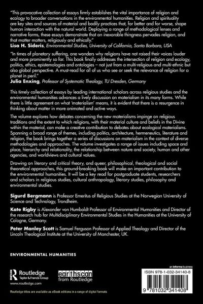 "This timely publication provides the field of environmental humanities with the essential contribution studies in religion and ecology can bring to the critical conversation that addresses the healing of our planet. Its diverse authors provide the reader with important new insights into the nature of matter, materiality, and materialism. Together, they articulate the relational ontology necessary for human engagement with the more than human world to ensure a viable future for all planetary existence."