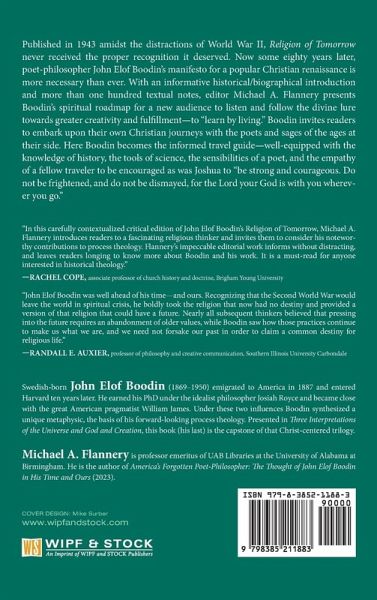 Published in 1943 amidst the distractions of World War II, Religion of Tomorrow never received the proper recognition it deserved. Now some eighty years later, poet-philosopher John Elof Boodin's manifesto for a popular Christian renaissance is more necessary than ever. With an informative historical/biographical introduction and more than one hundred textual notes, editor Michael A. Flannery presents Boodin's spiritual roadmap for a new audience to listen and follow the divine lure towards greater creativity and fulfillment--to ""learn by living."" Boodin invites readers to embark upon their own Christian journeys with the poets and sages of the ages at their side. Here Boodin becomes the informed travel guide--well-equipped with the knowledge of history, the tools of science, the sensibilities of a poet, and the empathy of a fellow traveler to be encouraged as was Joshua to ""be strong and courageous. Do not be frightened, and do not be dismayed, for the Lord your God is with you wherever you go.""