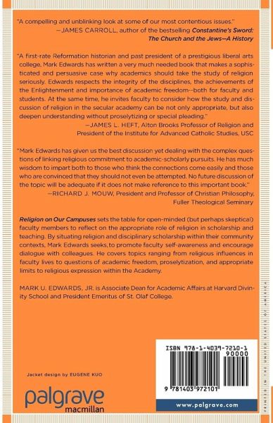 "A compelling and unblinking look at some of our most contentious issues." - James Carroll, author of the bestselling Constantine's Sword: The Church and the Jews - A History"A first-rate Reformation historian and past president of a prestigious liberal arts college, Mark Edwards has written a very much needed book that makes a sophisticated and persuasive case why academics should take the study of religion seriously. Edwards respects the integrity of the disciplines, the achievements of the Enlightenment and importance of academic freedom - both for faculty and students. At the same time, he invites faculty to consider how the study and discussion of religion in the secular academy can be not only appropriate, but also deepen understanding without proselytizing or special pleading.' - James L. Heft,James L. Heft, Alton Brooks Professor of Religion and President of the Institute for Advanced Catholic Studies, USC.'Mark Edwards has given us the best discussion yet dealing with the complex questions of linking religious commitment to academic-scholarly pursuits. He has much wisdom to impart both to those who think the connections come easily and those who are convinced that they should not even be attempted. No future discussion of the topic will be adequate if it does not make reference to this important book.' - Richard J. Mouw, President and Professor of Christian Philosophy, Fuller Theological Seminary