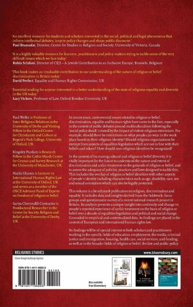 In recent years, controversial issues related to religion or belief, discrimination, equality and human rights have come to the fore, especially in the context of public debates around multiculturalism following the 'social policy shock' created by the impact of violent religious extremism. For example should there be restrictions on what people can wear in the work place based on their religious identity? Should religious organizations be exempt from aspects of equalities legislation which are not in line with their beliefs and values? How should non-religious identities be recognized? In the context of increasing cultural and religion or belief diversity, it is vitally important for the future to understand the nature and extent of discrimination and unfair treatment on the grounds of religion or belief, and to assess the adequacy of policies, practices and laws designed to tackle this. This includes the overlap of religion or belief identities with other aspects of people's identity including characteristics such as age, disability, race, sex and sexual orientation which can also be legally protected. This volume is a benchmark publication on religion, discrimination and equality. It includes data and insights derived from the fieldwork, focus groups and questionnaire survey of a recent national research project in Britain. Its analysis presents a unique insight into continuity and change in people's reported experience over a decade of equalities legislation and political and social change of unfair treatment on the basis of religion or belief. Grounded in empirical and contextualized data, its findings are placed in the context of European and international human rights law. Its findings will be of special interest to both scholars and practitioners working in the specific fields of education, employment, the media, criminal justice and immigration, housing, health care, social services, and funding, as well as in the broader fields of religion or belief, the law and public policy.