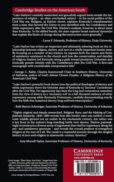 This book sheds new light on the role of religion in the nineteenth-century slavery debates. Luke E. Harlow argues that the ongoing conflict over the meaning of Christian 'orthodoxy' constrained the political and cultural horizons available for defenders and opponents of American slavery. The central locus of these debates was Kentucky, a border slave state with a long-standing antislavery presence. Although white Kentuckians famously cast themselves as moderates in the period and remained with the Union during the Civil War, their religious values showed no moderation on the slavery question. When the war ultimately brought emancipation, white Kentuckians found themselves in lockstep with the rest of the Confederate South. Racist religion thus paved the way for the making of Kentucky's Confederate memory of the war, as well as a deeply entrenched white Democratic Party in the state.