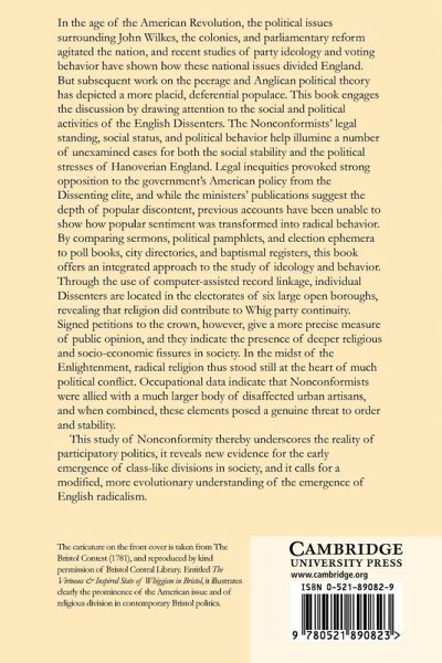 Preface List of tables, figures and maps Abbreviations 1. An introduction to religion in eighteenth-century political culture Part I. The Legal Status, Social Structure, and Ideology of Nonconformity: 2. Nonconformity, the law, and society 3. Nonconformity in politics: influence and independence 4. The dissenting pulpit, political ideology, and American independence 5. The dissenting pulpit and political radicalism in England Part II. Poll Books, Parliamentary Politics, and Nonconformity: 6. The dissenting interest and the American crisis in Bristol 7. The dissenting vote and electoral independence in Brstol and Great Yarmouth 8. Deference and the dissenting vote in Newcastle, Liverpool, Hull, and Colchester Part III. Petitions for Peace, Nonconformity, and Popular Politics: 9. The petitions of 1775: popular politics and the American crisis 10. The petitioners of 1775: law, social status, and religion Conclusion Appendix Bibliography Index.