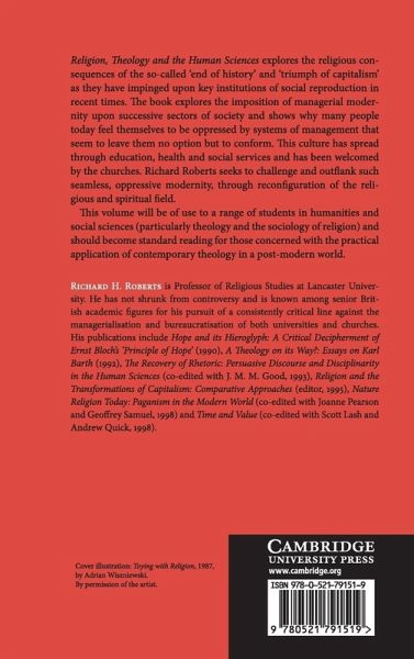 Religion, Theology and the Human Sciences explores the religious consequences of the so-called 'end of history' and 'triumph of capitalism' as they have impinged upon key institutions of social reproduction in recent times. The book explores the imposition of managerial modernity upon successive sectors of society and shows why many people today feel themselves to be oppressed by systems of management that seem to leave them no option but to conform. This culture has spread through education, health and social services and has been welcomed by the churches. Richard Roberts seeks to challenge and outflank such seamless, oppressive modernity, through reconfiguration of the religious and spiritual field. This volume will be of use to a range of students in humanities and social sciences (particularly theology and the sociology of religion) and should become standard reading for those concerned with the practical application of contemporary theology in a postmodern world.