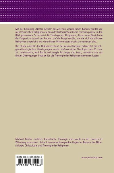 Die Studie umreißt den Diskussionsstand der neuen Disziplin, beleuchtet die religionstheologischen Überlegungen zweier einflussreicher Theologen des 20. bzw. 21. Jahrhunderts, Karl Barth und Joseph Ratzinger, und fragt, inwiefern sich aus diesen Überlegungen Impulse für die Theologie der Religionen gewinnen lassen.