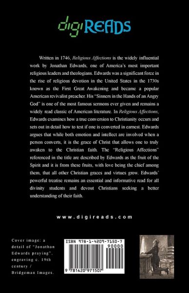Written in 1746, "Religious Affections" is the widely influential work by Jonathan Edwards, one of America's most important religious leaders and theologians. Edwards was a significant force in the rise of religious devotion in the United States in the 1730s known as the First Great Awakening and became a popular American revivalist preacher. His "Sinners in the Hands of an Angry God" is one of the most famous sermons ever given and remains a widely read classic of American literature. In "Religious Affections", Edwards examines how a true conversion to Christianity occurs and sets out in detail how to test if one is converted in earnest. Edwards argues that while both emotion and intellect are involved when a person converts, it is the grace of Christ that allows one to truly awaken to the Christian faith. The "Religious Affections" referenced in the title are described by Edwards as the fruit of the Spirit and it is from these fruits, with love being the chief among them, that all other Christian graces and virtues grow. Edwards' powerful treatise remains an essential and informative read for all divinity students and devout Christians seeking a better understanding of their faith. This edition is printed on premium acid-free paper.