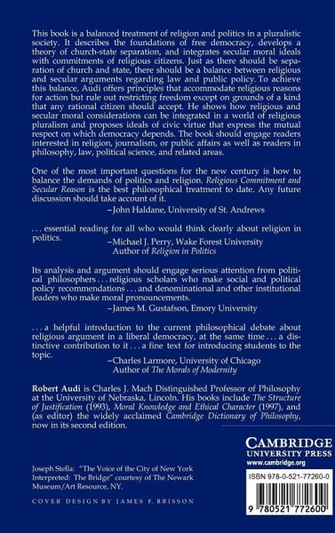 Many religious people are alarmed about features of the current age - violence in the media, a pervasive hedonism, a marginalization of religion, and widespread abortion. These concerns influence politics, but just as there should be a separation between church and state, so should there be a balance between religious commitments and secular arguments calling for social reforms. Robert Audi offers a principle of secular rationale, which does not exclude religious grounds for action but which rules out restricting freedom except on grounds that any rational citizen would accept. The book describes the essential commitments of free democracy, explains how religious and secular moral considerations can be integrated to facilitate co-operation in a world of religious pluralism, and proposes ideals of civic virtue that express the mutual respect on which democracy depends. Audi offers a balanced and sophisticated treatment of the relations between religion and politics in a modern, secular society.