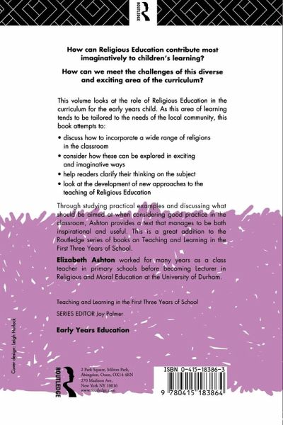 This volume looks at the role of Religious Education in the curriculum for the Early Years child. This book attempts to: *Discuss how to incorporate a wide range of religions in the classroom; *Consider how these can be explored in exciting and imaginative ways; *Help readers clarify their thinking on the subject; *Looks at the development of new approaches to the teaching of RE. Through studying practical examples and discussing what should be aimed at when considering good practice in the classroom, she provides a text that manages to be both inspirational and useful. This is a great addition to the RoutledgeFalmer series of books on Teaching and Learning in the First Three Years of School.