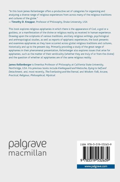 This book explores religious epiphanies in which there is the appearance of God, a god or a goddess, or a manifestation of the divine or religious reality as received in human experience. Drawing upon the scriptures of various traditions, ancillary religious writings, psychological and anthropological studies, as well as reports of epiphanic experiences, the book presents and examines epiphanies as they have occurred across global religious traditions and cultures, historically and up to the present day. Primarily providing a study of the great range of epiphanies in their phenomenal presentation, Kellenberger also explores issues that arise for epiphanies, such as the matter of their veridicality (whether they are truly of or from the divine) and the question of whether all epiphanies are of the same religious reality.