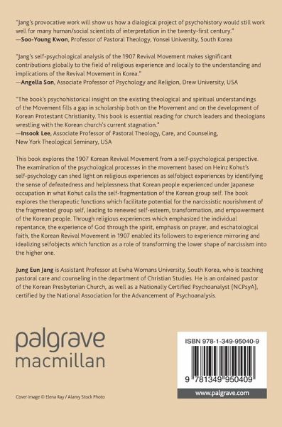 This book explores the 1907 Korean Revival Movement from a self psychological perspective. The examination of the psychological processes in the movement based on Heinz Kohut's self psychology can shed light on religious experiences as selfobject experiences by identifying the sense of defeatedness and helplessness that Korean people experienced under Japanese occupation as what Kohut calls self-fragmentation of the Korean group self and explaining its therapeutic functions which facilitate potential for the narcissistic nourishment of the fragmented group self leading to renewed self-esteem, transformation, and empowerment of the Korean people. Korean people in the early 1900s experienced abuses and oppression by corrupt officials and exploitation by Japanese government. Through religious experiences which emphasized the individual repentance, the experience of God through the spirit, emphasis on prayer, and eschatological faith, the Korean Revival Movement in 1907 enabled its followers to experience mirroring and idealizing selfobjects which function as a role of transforming the lower shape of narcissism into the higher one.