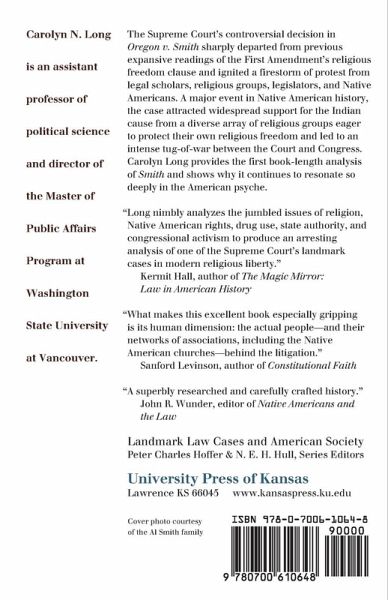 The Supreme Court's controversial decision in Oregon v. Smith sharply departed from previous expansive readings of the First Amendment's religious freedom clause and ignited a firestorm of protest from legal scholars, religious groups, legislators, and Native Americans. Carolyn Long provides the first book-length analysis of Smith and shows why it continues to resonate so deeply in the American psyche. In 1983, Klamath Indian Alfred Smith and his co-worker Galen Black were fired as counselors from a drug rehabilitation agency for using peyote, a controlled substance under Oregon law, in a religious ceremony of the Native American Church. Both were subsequently denied unemployment benefits, which the State of Oregon claimed was permissible under its police powers and necessary in its effort to eradicate drug abuse. But Smith and Black argued that the denial of unemployment benefits constituted an infringement of their religious freedom and took their cases to court. Long traces the tortuous path that Smith followed as it went from state courts to the Supreme Court and then back again for a second round of hearings. A major event in Native American history, the case attracted widespread support for the Indian cause from a diverse array of religious groups eager to protect their own religious freedom. It also led to an intense tug-of-war between the Court and Congress, which fought back with amendments to the American Indian Religious Freedom Act (to protect the religious use of peyote) and the Religious Freedom Restoration Act of 1993, which protected religious freedom for all Americans. The Court subsequently ruled the latter act unconstitutional in Boerne v. Flores (1997). Long provides a lucid and balanced view of the competing sides in Smith. Drawing on interviews with Smith and his family, as well as with lawyers, judges, and congressional and interest group representatives involved in this struggle between Congress and Court, she takes the reader from the rituals of a peyote religious ceremony to the halls of government to reveal the conflicting interests that emerged in this key First Amendment case. She also clarifies how the Court reversed longstanding precedent by replacing the balancing test of "compelling state interest" and "least restrictive means" with a new "reasonable basis" argument that theoretically could be used to curtail religious practices well beyond those of the Native American church. Ultimately, the Supreme Court ruled that the First Amendment protection of religious freedom applies only to laws that specifically target religious behavior and that an individual's religious beliefs do not excuse one from complying with statutes that indirectly infringe on their religious rights. Engagingly written, Long's study highlights the resultant struggles, but without ever losing sight of the rich human dimensions of the story.