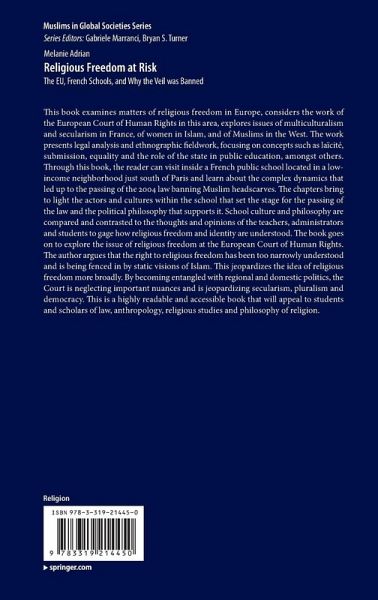 This book examines matters of religious freedom in Europe, considers the work of the European Court of Human Rights in this area, explores issues of multiculturalism and secularism in France, of women in Islam, and of Muslims in the West. The work presents legal analysis and ethnographic fieldwork, focusing on concepts such as laïcité, submission, equality and the role of the state in public education, amongst others. Through this book, the reader can visit inside a French public school located in a low-income neighborhood just south of Paris and learn about the complex dynamics that led up to the passing of the 2004 law banning Muslim headscarves. The chapters bring to light the actors and cultures within the school that set the stage for the passing of the law and the political philosophy that supports it. School culture and philosophy are compared and contrasted to the thoughts and opinions of the teachers, administrators and students to gage how religious freedom and identityare understood. The book goes on to explore the issue of religious freedom at the European Court of Human Rights. The author argues that the right to religious freedom has been too narrowly understood and is being fenced in by static visions of Islam. This jeopardizes the idea of religious freedom more broadly. By becoming entangled with regional and domestic politics, the Court is neglecting important nuances and is jeopardizing secularism, pluralism and democracy. This is a highly readable and accessible book that will appeal to students and scholars of law, anthropology, religious studies and philosophy of religion.