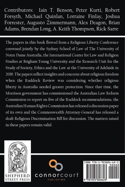 The papers in this book flowed from a Religious Liberty Conference convened jointly by the Sydney School of Law of The University of Notre Dame Australia, the International Center for Law and Religion Studies at Brigham Young University and the Research Unit for the Study of Society, Ethics and the Law at the University of Adelaide in 2018. The papers reflect insights and concerns about religious freedom when the Ruddock Review was considering whether religious liberty in Australia needed greater protection. Since that time, the Morrison government has commissioned the Australian Law Reform Commission to report on five of the Ruddock recommendations, the Australian Human Rights Commission has released a discussion paper of its own and the Commonwealth Attorney-General has released a draft Religious Discrimination Bill for discussion. The matters raised in these papers remain valid.