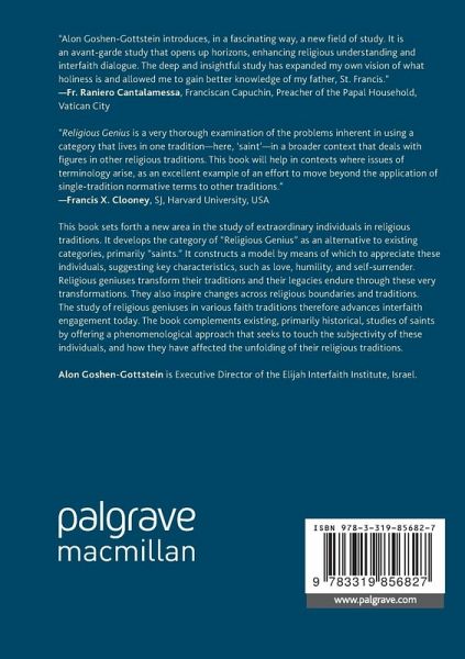 This book sets forth a new area in the study of extraordinary individuals in religious traditions. It develops the category of "Religious Genius" as an alternative to existing categories, primarily "saint." It constructs a model by which to appreciate these individuals, suggesting key characteristics such as love, humility, and self-surrender. Religious geniuses transform their traditions and their legacies endure through these very transformations. They also inspire changes across religious boundaries and traditions. The study of religious geniuses in various faith traditions therefore advances interfaith engagement today. The book complements existing, primarily historical, studies of saints by offering a phenomenological approach that seeks to touch the subjectivity of these individuals, and how they have affected the unfolding of their religious traditions.
