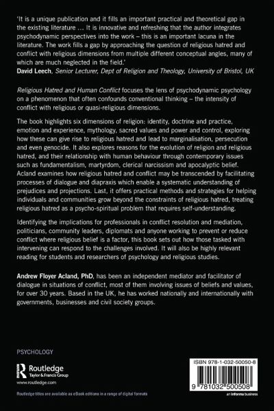 'It is a unique publication and it fills an important practical and theoretical gap in the existing literature ... It is innovative and refreshing that the author integrates psychodynamic perspectives into the work - this is an important lacuna in the literature. The work fills a gap by approaching the question of religious hatred and conflict with religious dimensions from multiple different conceptual angles, many of which are much neglected in the field.' - David Leech, Senior Lecturer, Dept of Religion and Theology, University of Bristol, UK