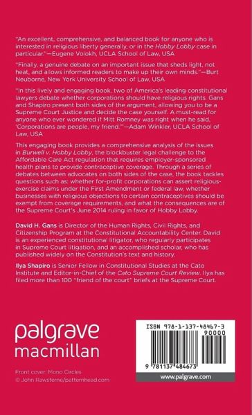 "In this lively and engaging book, two of America's leading constitutional lawyers debate whether corporations should have religious rights. Gans and Shapiro present both sides of the argument, allowing you to be a Supreme Court Justice and decide the case yourself. A must-read for anyone who ever wondered if Mitt Romney was right when he said, 'Corporations are people, my friend.'" - Adam Winkler, UCLA School of Law, USA