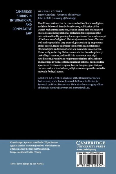 Should international law be concerned with offence to religions and their followers? Even before the 2005 publication of the Danish Mohammed cartoons, Muslim States have endeavoured to establish some reputational protection for religions on the international level by pushing for recognition of the novel concept of 'defamation of religions'. This study recounts these efforts as well as the opposition they aroused, particularly by proponents of free speech. It also addresses the more fundamental issue of how religion and international law may relate to each other. Historically, enforcing divine commands has been the primary task of legal systems, and it still is in numerous municipal jurisdictions. By analysing religious restrictions of blasphemy and sacrilege as well as international and national norms on free speech and freedom of religion, Lorenz Langer argues that, on the international level at least, religion does not provide a suitable rationale for legal norms.