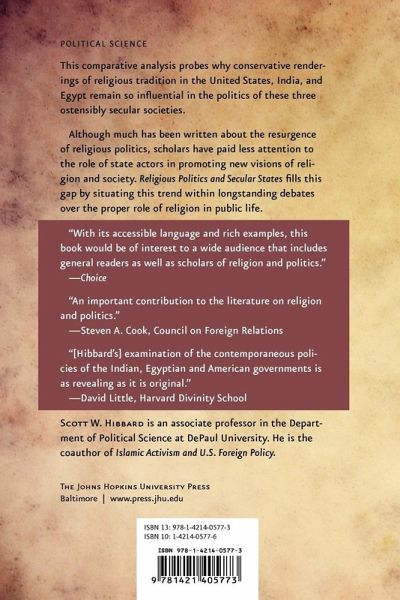 This comparative analysis probes why conservative renderings of religious tradition in the United States, India, and Egypt remain so influential in the politics of these three ostensibly secular societies. The United States, Egypt, and India were quintessential models of secular modernity in the 1950s and 1960s. By the 1980s and 1990s, conservative Islamists challenged the Egyptian government, India witnessed a surge in Hindu nationalism, and the Christian right in the United States rose to dominate the Republican Party and large swaths of the public discourse. Using a nuanced theoretical framework that emphasizes the interaction of religion and politics, Scott W. Hibbard argues that three interrelated issues led to this state of affairs. First, as an essential part of the construction of collective identities, religion serves as a basis for social solidarity and political mobilization. Second, in providing a moral framework, religion's traditional elements make it relevant to modern political life. Third, and most significant, in manipulating religion for political gain, political elites undermined the secular consensus of the modern state that had been in place since the end of World War II. Together, these factors sparked a new era of right-wing religious populism in the three nations. Although much has been written about the resurgence of religious politics, scholars have paid less attention to the role of state actors in promoting new visions of religion and society. Religious Politics and Secular States fills this gap by situating this trend within long-standing debates over the proper role of religion in public life.