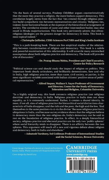 This book demonstrates the close relationship between religion and democracy in India. Religious practice creates ties among citizens that can generate positive and democratic political outcomes. In pursuing this line of inquiry the book questions a dominant strand in some contemporary social sciences - that a religious denomination (Catholic, Hindu, Muslim, Sikh, and so on) is sufficient to explain the relationship between religion and politics or that religion and democracy are antithetical to each other. The book makes a strong case for studying religious practice and placing that practice in the panoply of other social practices and showing that religious practice is positively associated with democracy.